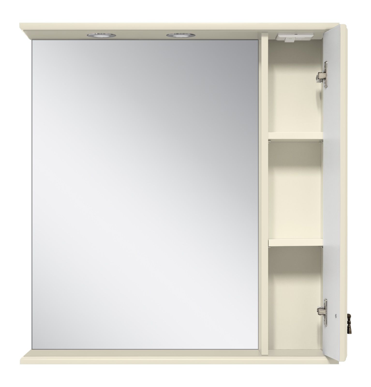 Зеркальный шкаф с подсветкой Misty Лувр 75см правый слоновая кость