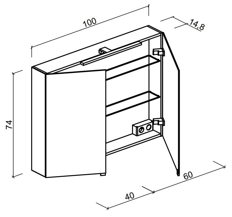 - Размер: Ш100 х В74 х Г14.8 см