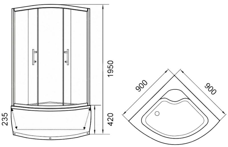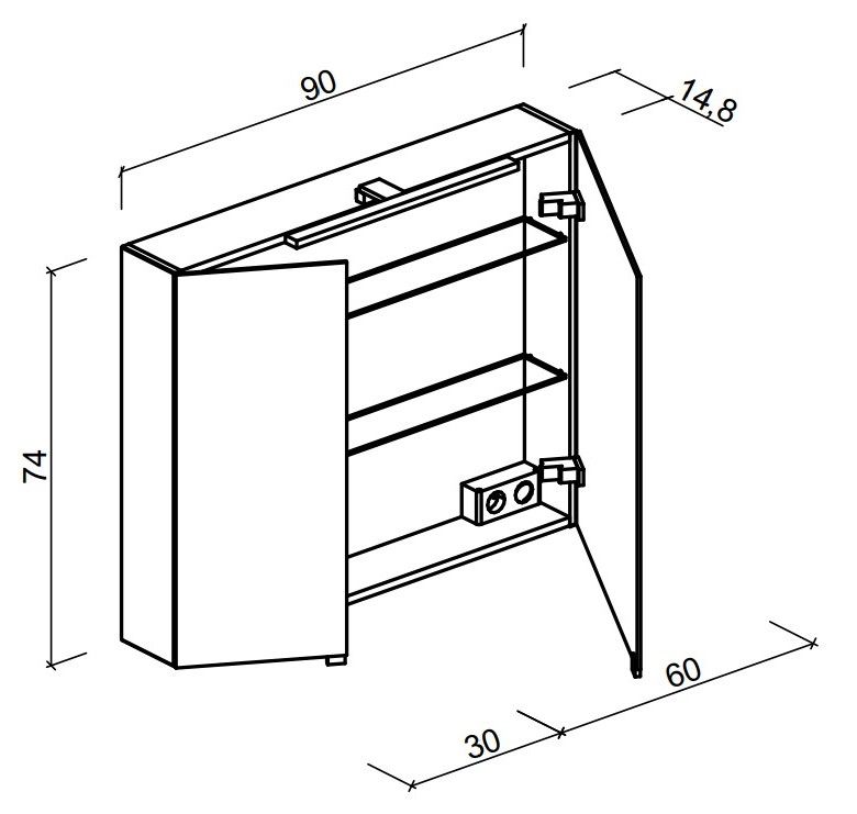 • 2 распашных фасада, полки стеклянные 2 шт.