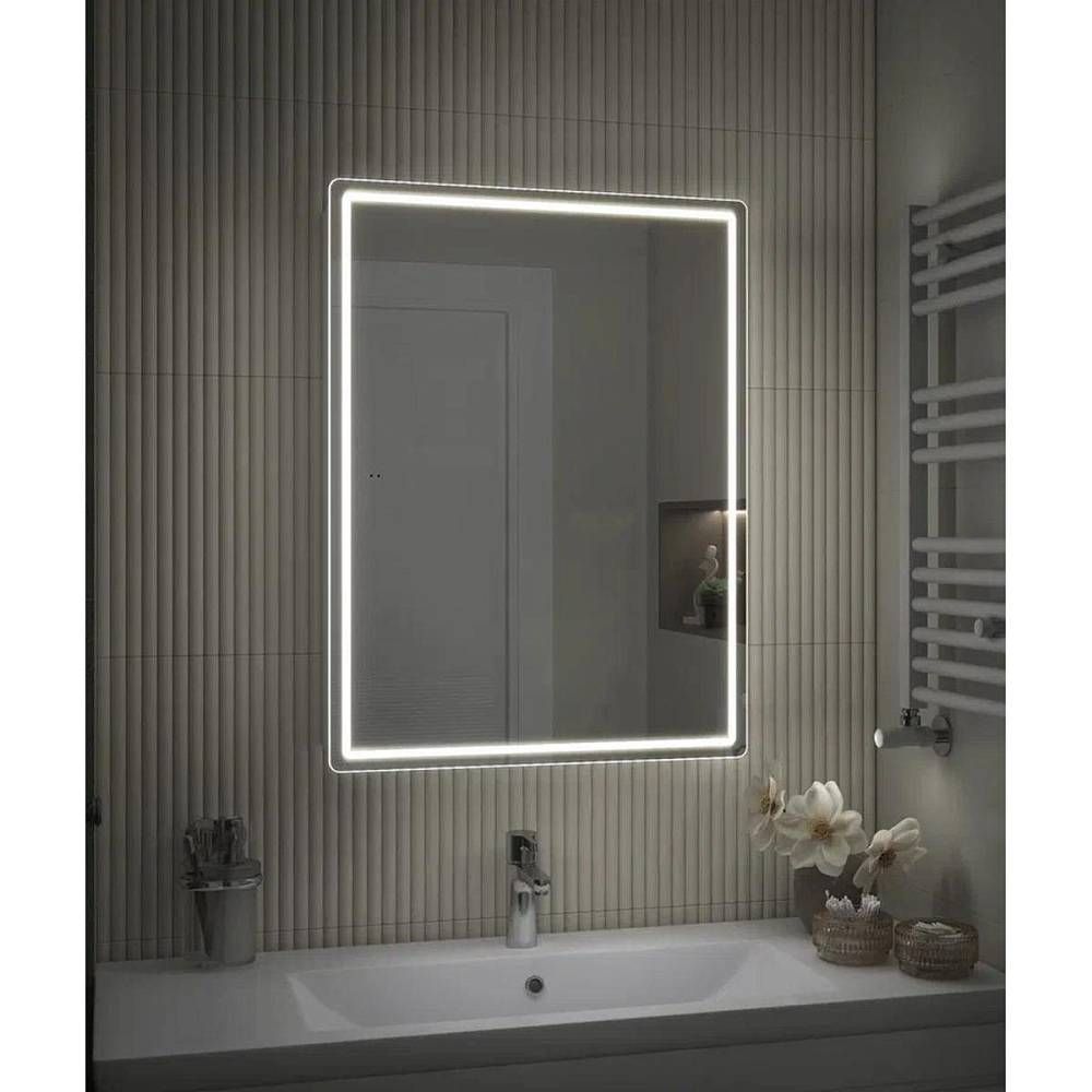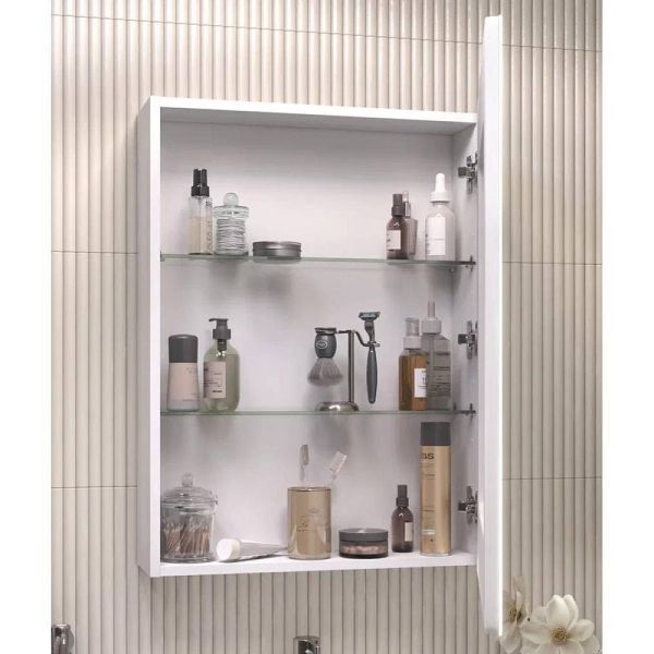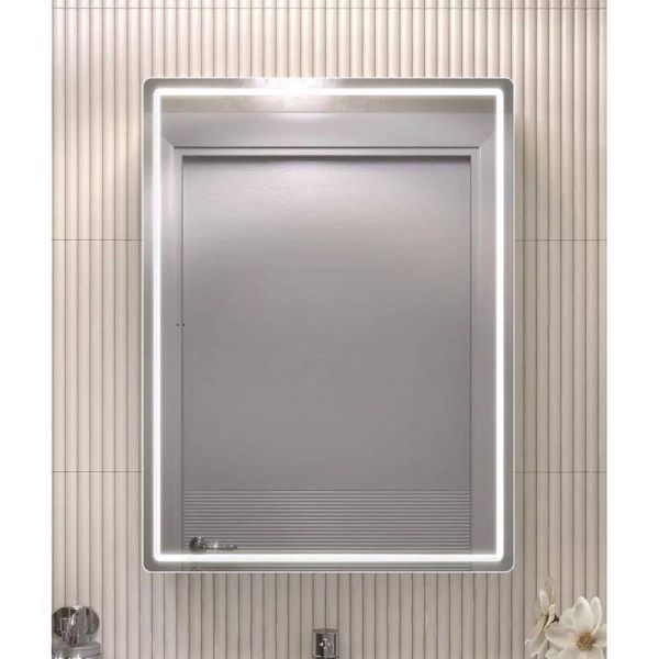 Зеркальный шкаф VIGO Geometry 117, 60 см. 1 дверца, петли с механизмом доводчика, 2 стеклянных полки, светодиодная подсветка по периметру, бесконтактное включение (на взмах).