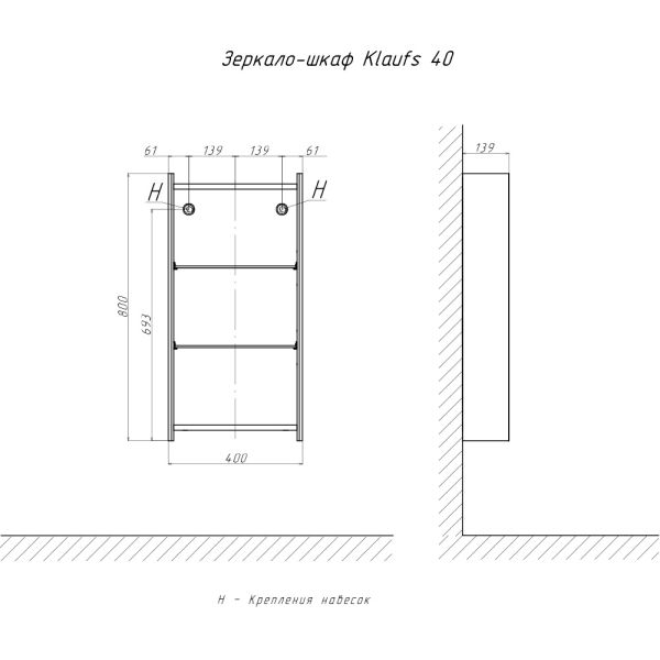 Зеркальный шкаф Velvex Klaufs, 40 см: 1 распашная дверца, 2 стеклянные полки