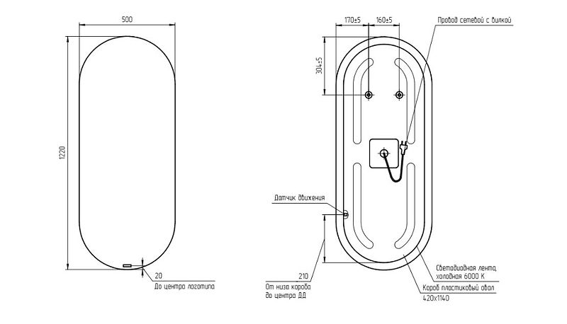 Зеркало 50х122 см Cersanit Eclipse 64150