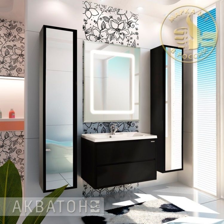 • В зеркале за гравировкой установлена подсветка, которая легко включается при помощи сенсорного выключателя