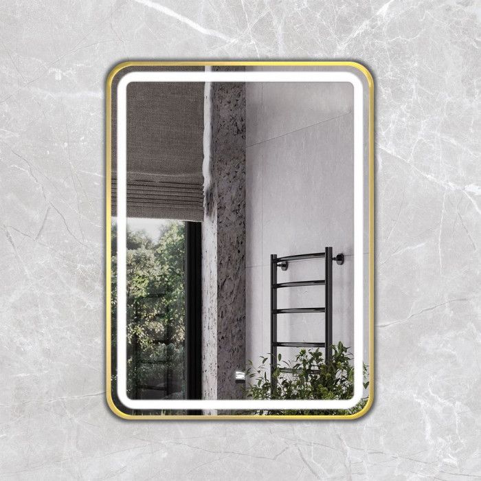 Зеркало Comforty Ситара-60 00-00017881 золото матовоеЗеркало в золотой алюминиевой раме 60 см для ванной комнаты Comforty Ситара-60, LED-подсветка, бесконтактный сенсор, антизапотевание 00-00017863 Зеркальное полотно матовое без лицевой фурнитуры Россия Гарантийный срок 2 года Производитель: Comforty Коллекция: Ситара Артикул: 00-00014160CF Габаритные размеры ШхВхГ: 600*800*31 мм Высококачественное зеркальное полотно с амальгамой на основе серебра Цвет рамы: матовое золото Материал рамы: анодированный алюминий Функция антизапотевания Зеркало с фронтальным типом подсветки оснащено выключателем с бесконтактным сенсором Функция диммирования - регулировка яркости подсветки от минимального до яркого. Подсветка из светодиодной ленты с классом защиты IP20 Яркий и равномерный свет мощностью 800 Лм/м Температура свечения 6500К, идеально яркий и естественный свет Подключение к сети 220В с помощью евровилки. Длина кабеля - 950 мм Зеркало в алюминиевой раме со светодиодной подсветкой Рама зеркала выполнена из брашированного алюминиевого профиля Профиль рамы обладает повышенной устойчивостью к механическим повреждениям, коррозии и перепадам температур Радиус скругления профиля – 60 мм При изготовлении рамы зеркала используется метод анодирования, который формирует прочный и тонкий оксидный слой