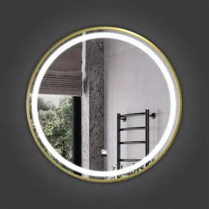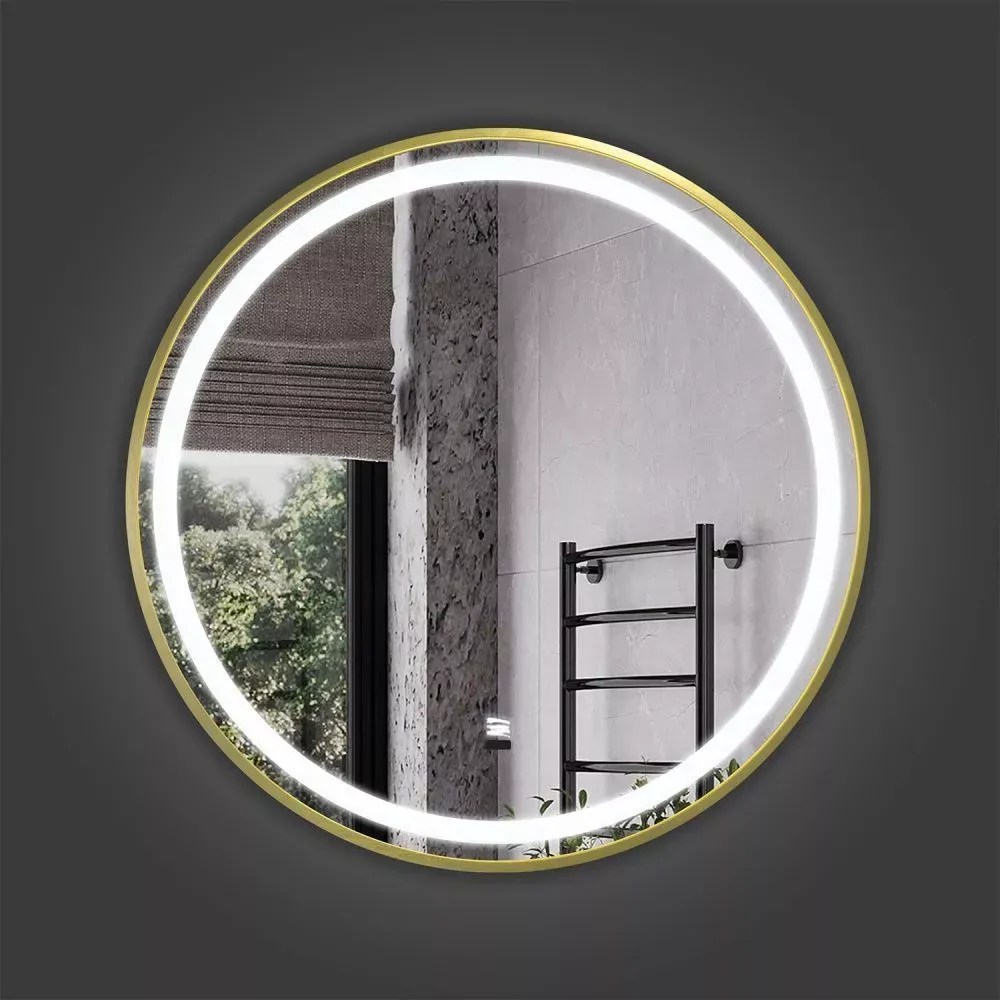 Зеркало Comforty в золотой алюминиевой раме Лея-60 LED-подсветка, бесконтактный сенсор