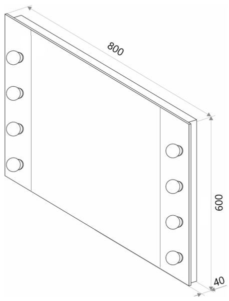Гримерное Этюд встроенными Led лампами (8 ламп) 800х600LED подсветкафункция изменения теплоты подсветки (холодная/нейтральная/теплая)механический выключатель
