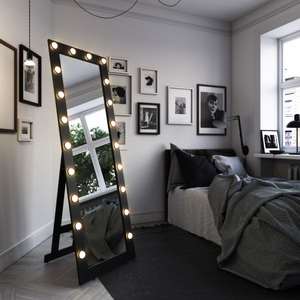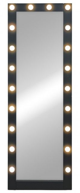 Зеркало Гримерное напольное черное 600х1750 (20 ламп)LED подсветка 6000К механический выключатель рама МДФ цвет рамы - черный
