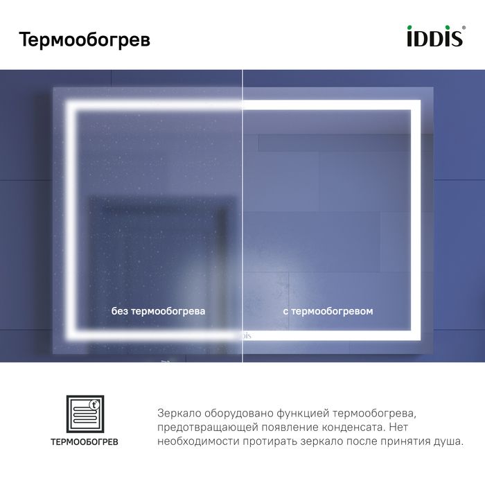Зеркало IDDIS Zodiac ZOD10T0i98 c подсветкой 100 смБольшое зеркало Zodiac – это отличное решение для большинства интерьеров ванных комнат вне зависимости от стилистических предпочтений. Отсутствие видимой рамы позволяет сочетать модель с разными коллекциями мебели. Светодиодная подсветка обеспечивает приятный фронтальный свет. Логотип бренда расположен в зоне подсветки, что делает его почти незаметным при выключении освещения. Зеркало Zodiac также представлено в варианте без функции термообогрева (арт. ZOD1000i98). • На зеркальной поверхности не остается отпечатков пальцев благодаря механическому управлению светодиодной подсветкой. Выключатель спрятан на торце зеркала и невидим взгляду – активировать освещение можно простым нажатием на кнопку. • Корпус зеркала IDDIS® изготовлен из ударопрочного пластика, а значит — прослужит долго. • Зеркало IDDIS® оборудовано функцией термообогрева, предотвращающей появление конденсата. Это избавит от необходимости протирать зеркало после принятия душа. • Гарантия на мебель IDDIS® – 3 года. (с) Авторский текст, апрель 2022 г.