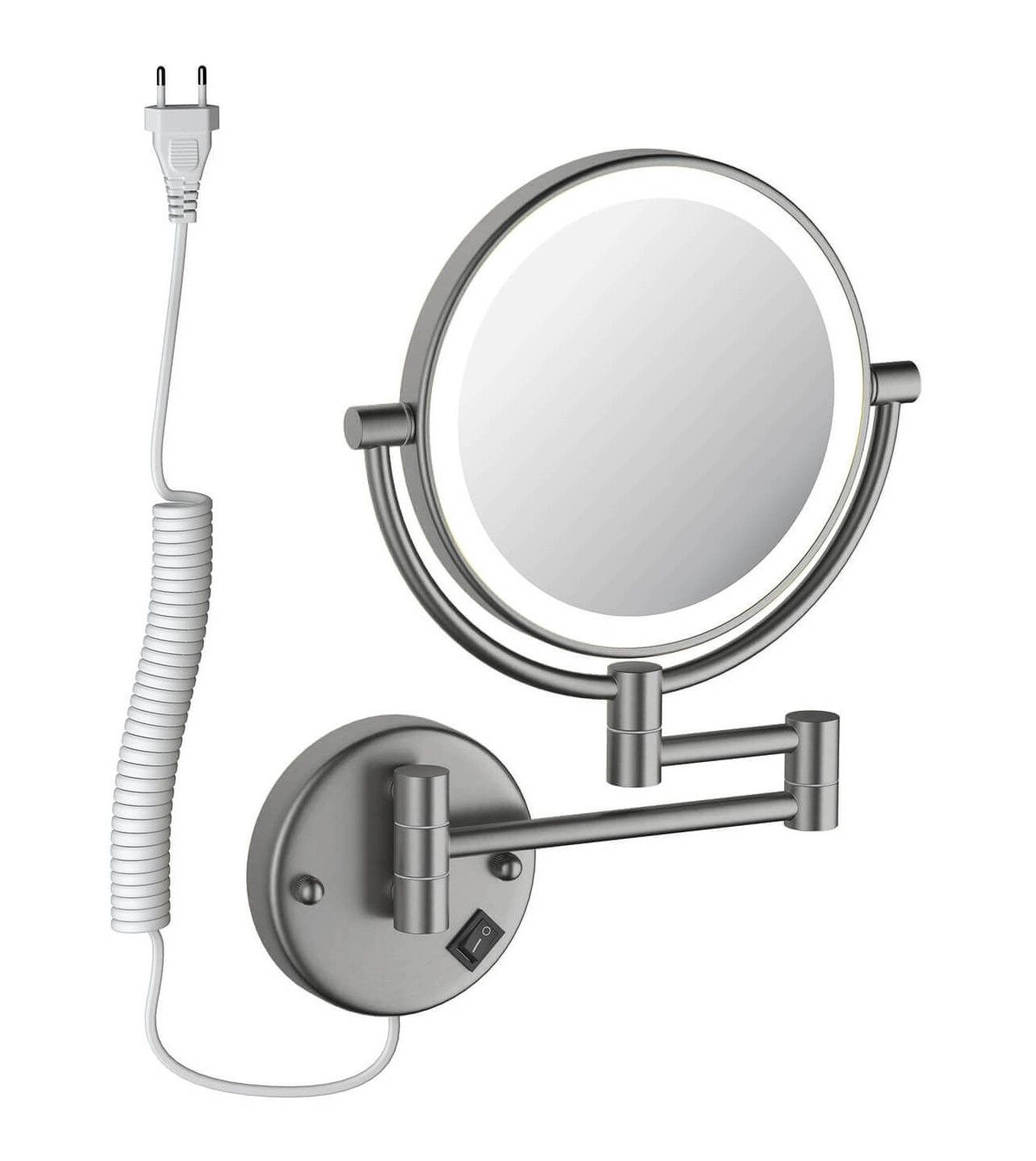 Зеркало косметическое настенное Aquatek AQ4915BGM с подсветкой 5х шлифованный чёрный хром