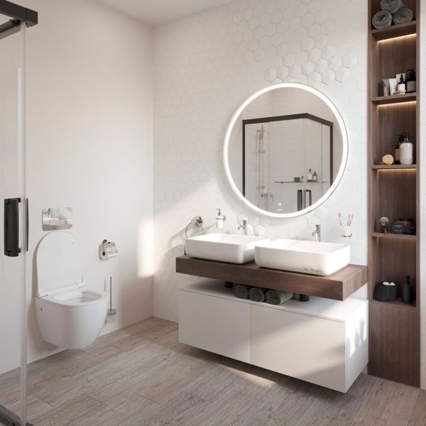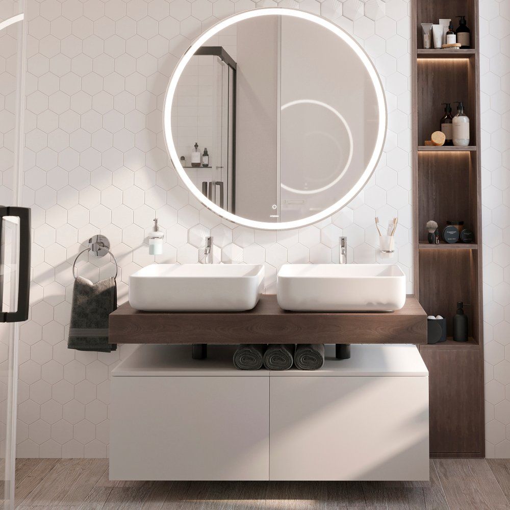 Зеркало круглое STWORKI Мальмё 100 с подсветкой, сенсор на зеркале, круглое, настенное, российское