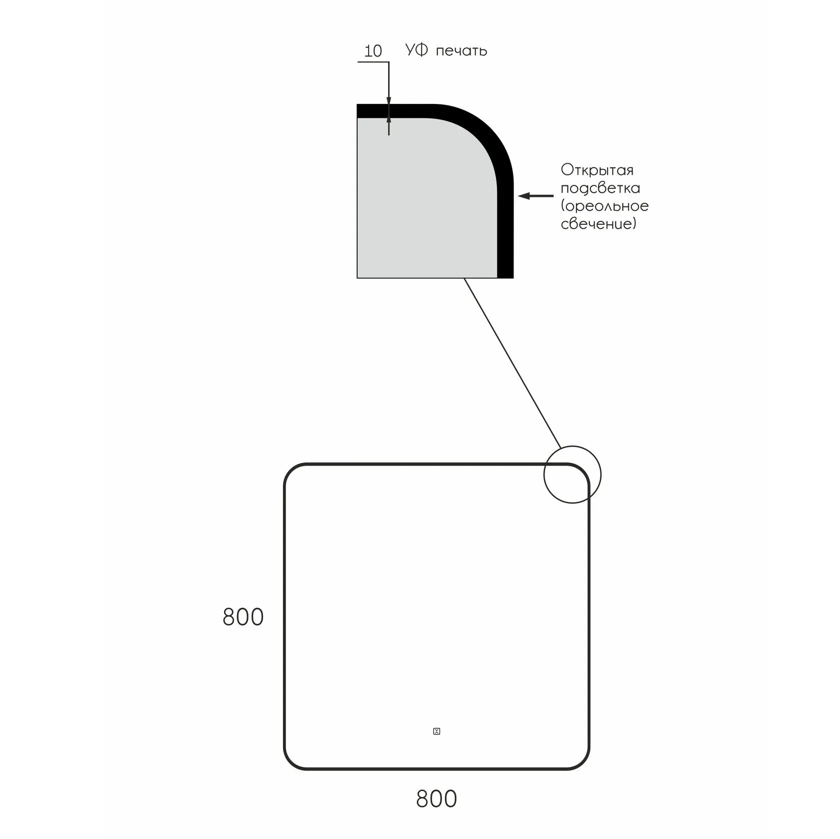 Зеркало Reflexon Night с фронтальной подсветкой, к/с, диммером 800х800