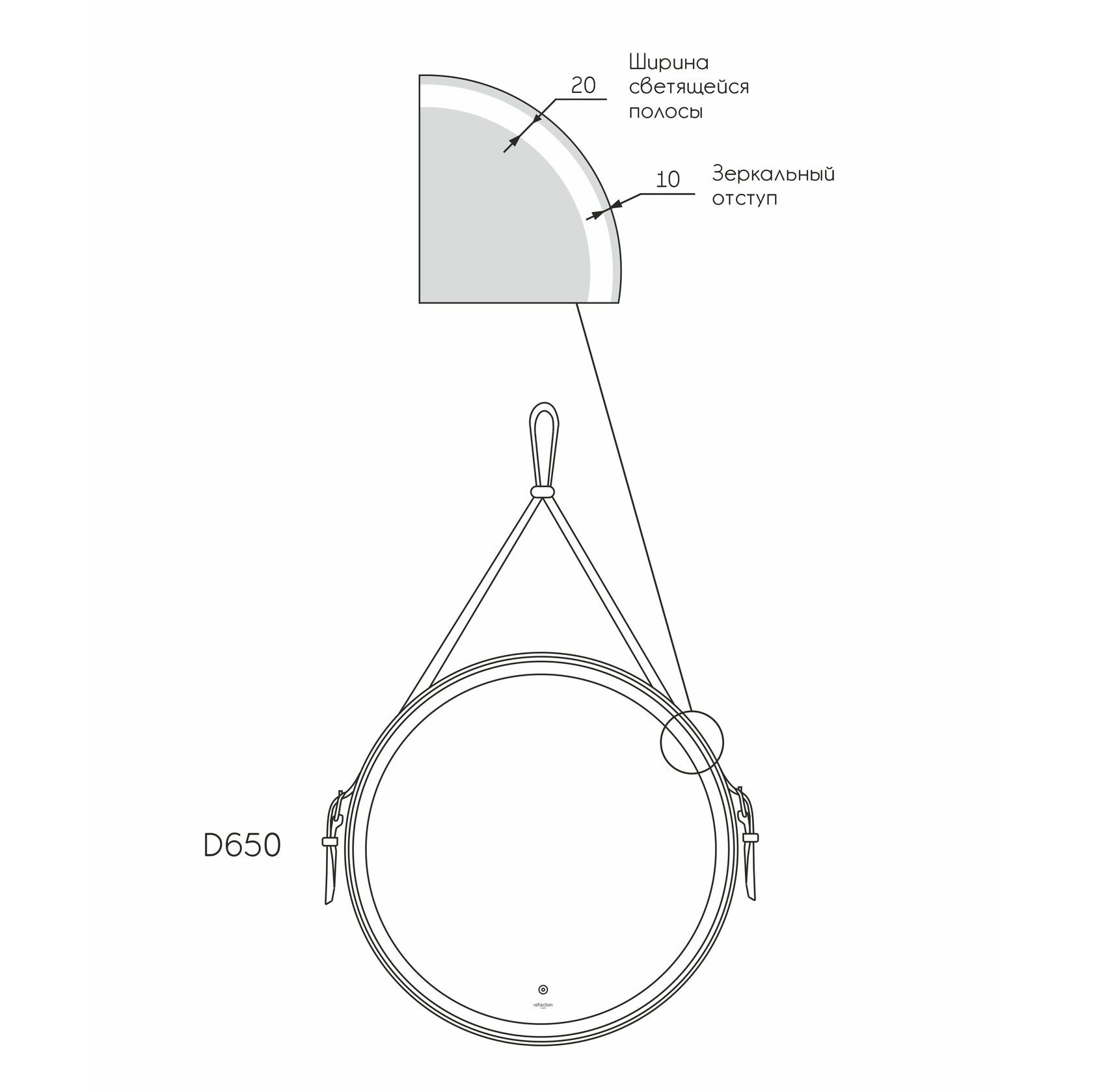 Зеркало Reflexion Skin RF5325SK с LED подсветкой сенсором на ремне из натуральной кожи черного ц... Подробнее