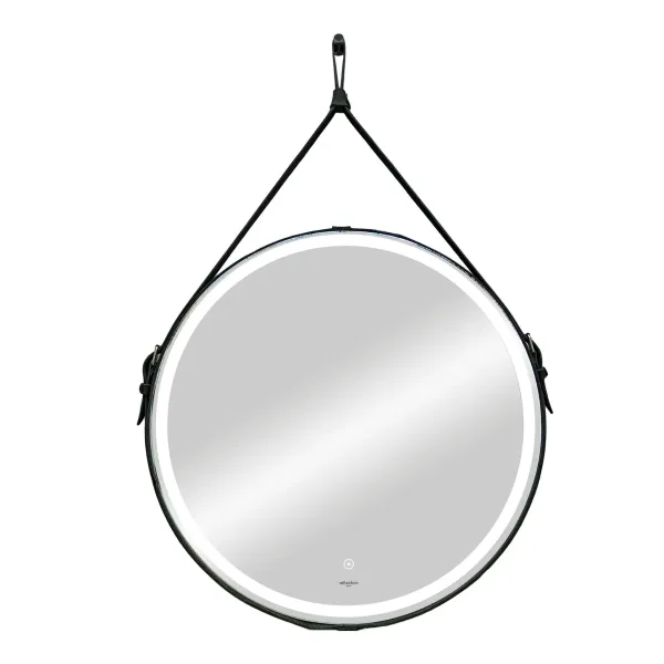 Зеркало Reflexion Skin RF5325SK с LED подсветкой сенсором на ремне из натуральной кожи черного цвета 65х65 купить