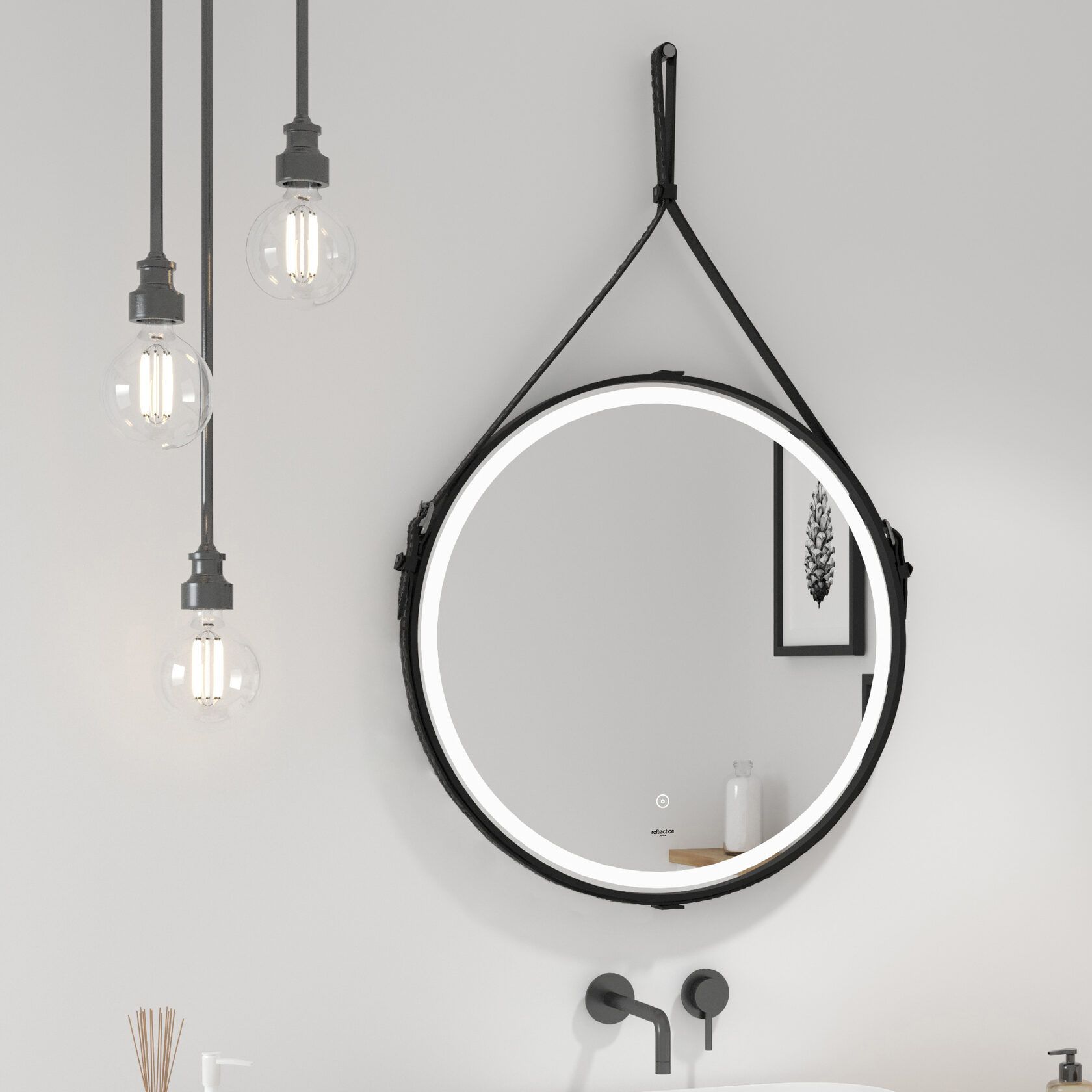 Зеркало Reflexion Skin с LED подсветкой, сенсором, на ремне из натуральной кожи черного цвета D650
