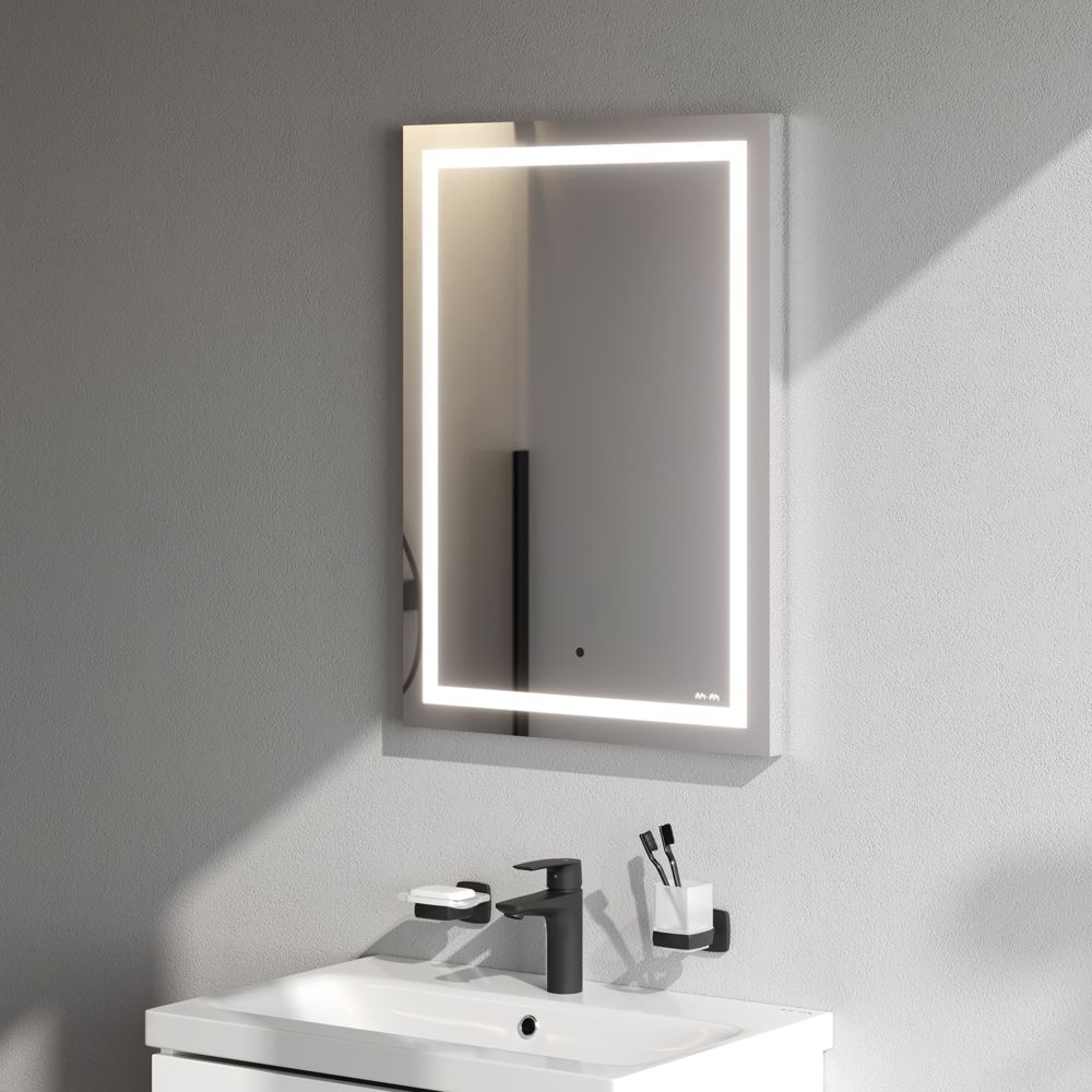 Усиленная LED-подсветка по контуру зеркала обеспечивает отличное рассеянное освещение и отсутствие теней. Срок службы светодиодов составляет более 30 000 часов.