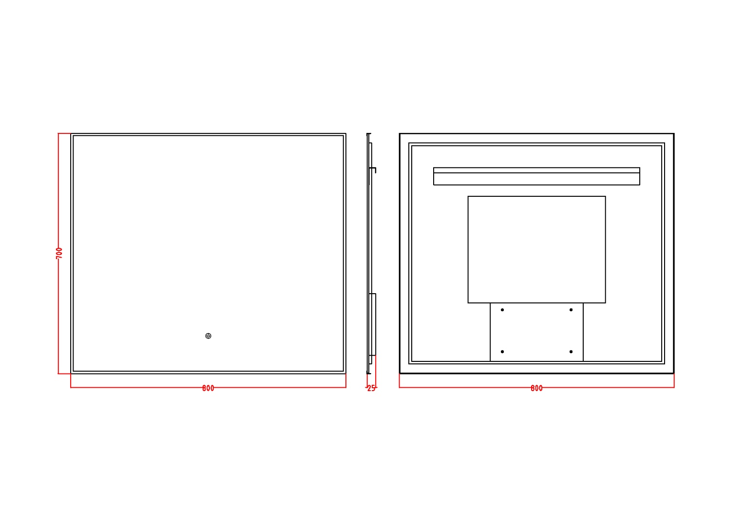 Размерный ряд от 80см до 140см. Каждое зеркало оборудовано тыльной подсветкой