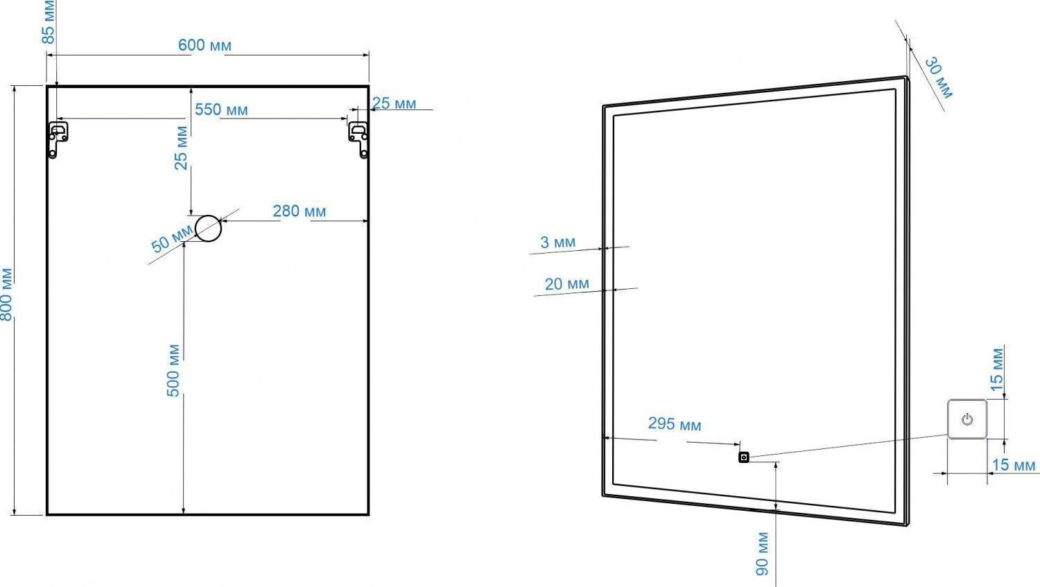 • Размер сенсорной кнопки: 15х15 мм