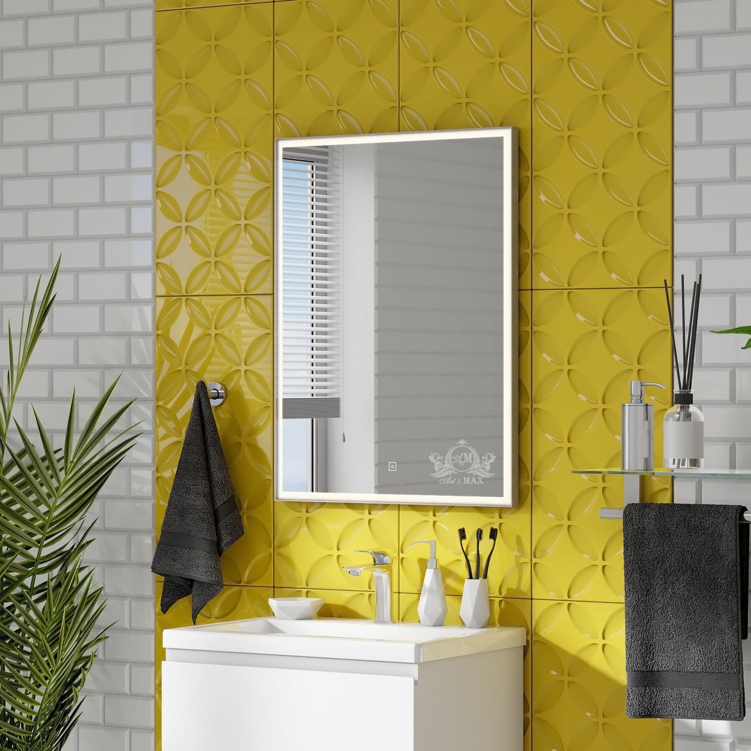Зеркало Art&Max выполнено в современном стиле и отлично дополнит интерьер любой ванной комнаты. Благодаря подвесной конструкции модель не занимает много места, что позволяет экономить пространство в небольшой ванной комнате. Модель оснащена встроенной светодиодной LED подсветкой с диммером, также профилем из полированного аллюминия по периметру зеркала.В комплект поставки входит крепеж.Особенности: