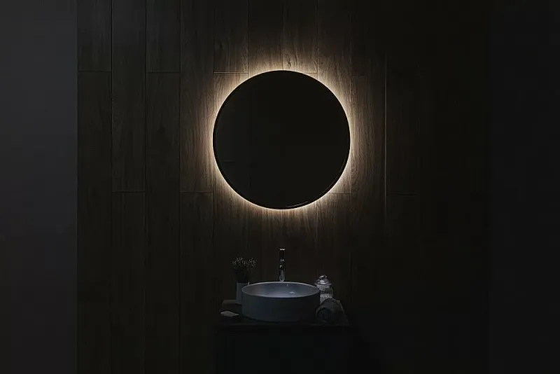 Ореольная подсветка подчеркивает форму зеркала и создает эффект парения.