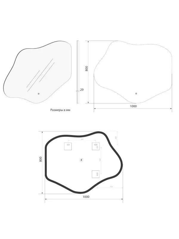 Оснащение: зеркало, крепеж, коробка, инструкция.