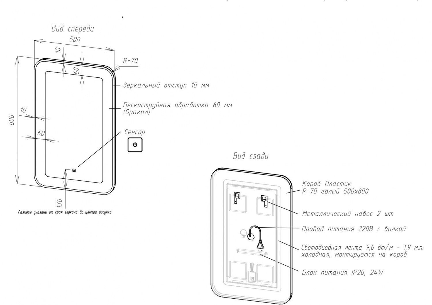 • Толщина зеркального отступа: 10 мм