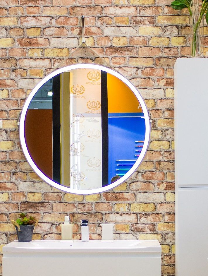 Зеркало Art&Max выполнено в современном стиле и отлично дополнит интерьер любой ванной комнаты. Благодаря подвесной конструкции модель не занимает много места, что позволяет экономить пространство в небольшой ванной комнате. Модель оснащена ремнем и встроенной светодиодной LED подсветкой с диммером. Ремень выполнен из натуральной кожи белого цвета.В комплект поставки входит крепеж и ремень.Особенности: