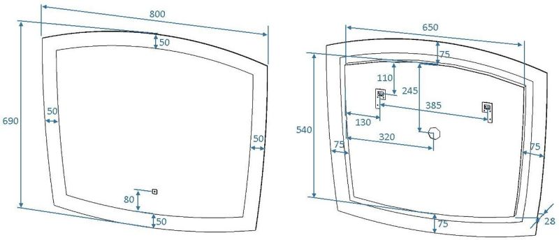 - Размер зеркального полотна: 650х540 мм