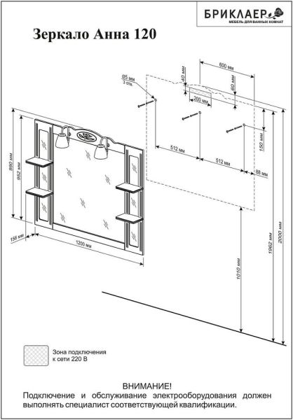 Зеркало с подсветкой Бриклаер Анна 4627125411359 120 см белый