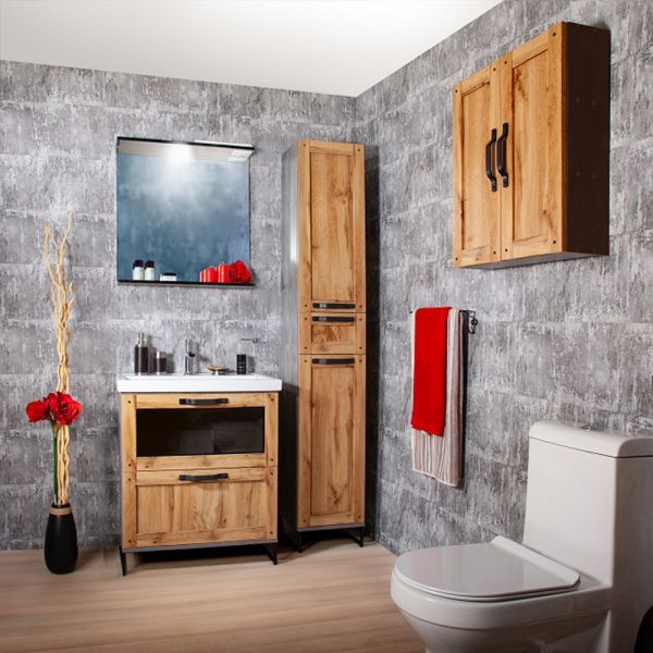 Его чистые линии и сдержанная форма создают гармоничный контраст с отделкой стен и сантехникой, добавляя комнате ощущение простоты и элегантности.