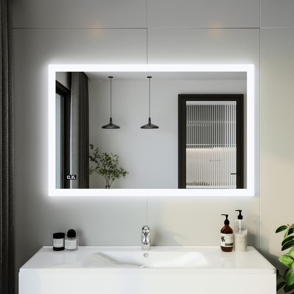 Зеркало с подсветкой Бриклаер Вега 4627125414398 с часами 125 см на взмах руки купить