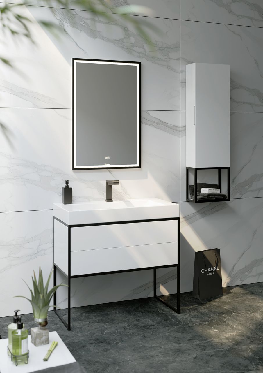 Зеркало Clarberg Logiс 60 LOG0206 со светодиодной подсветкой, системой обогрева для защиты от запотевания и двумя сенсорными выключателями. Главная особенность коллекции - это применение алюминиевого анодированного профиля в чёрном цвете.Цвет корпуса: черный.