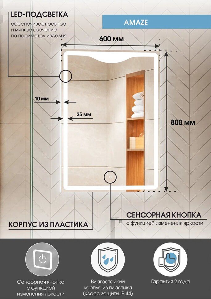 Зеркало "Amaze Led" 600х800LED подсветка 6000Ксенсорный выключатель с функцией димирования