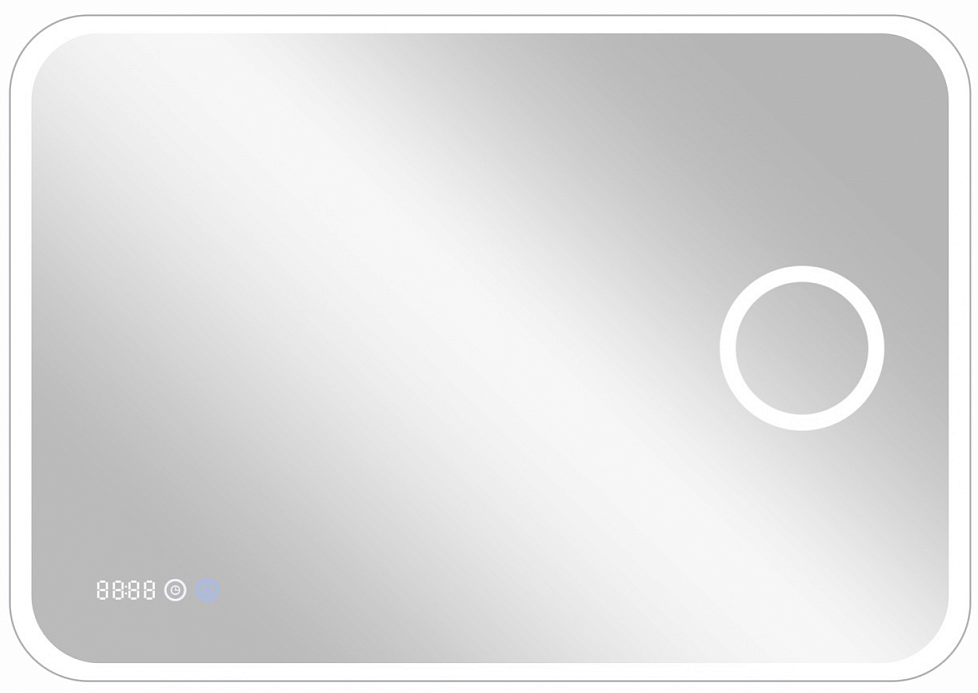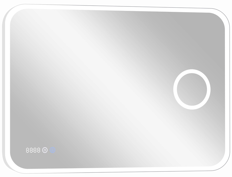 Зеркало "Bliss Led" 800х700 с увеличительным зеркалом, часамиLED подсветка 6000Ксенсорный выключательвстроенное увеличительное зеркало (линза) с 3-х кратным увеличениемдополнительная подсветка вокруг линзывстроенные часы