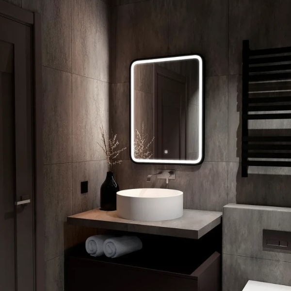 Зеркало "Enjoy Black Led" 600х800LED подсветка 6000Ксенсорный выключатель с функцией димированиярама МДФ черного цвета