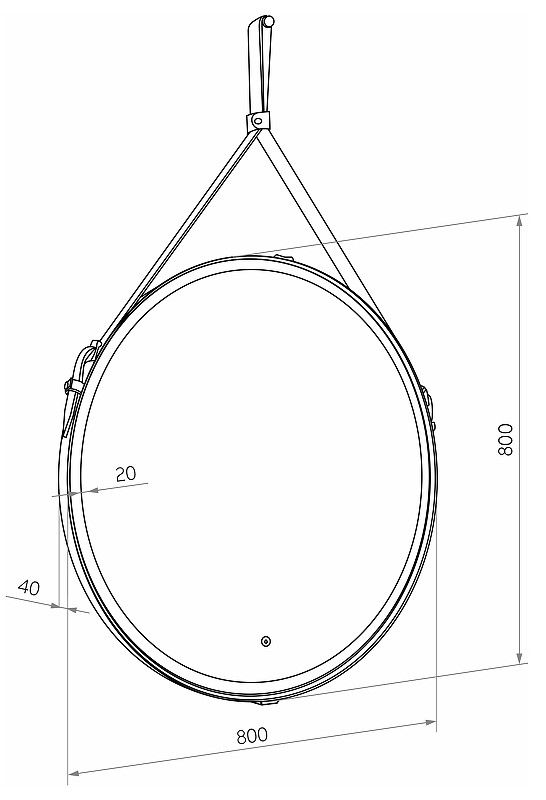 Зеркало "Millenium Black Led" D 800 на ремне из натуральной кожи черного цветаLED подсветка 6000Ксенсорный выключатель с функцией димированияремень из натуркожи черного цвета