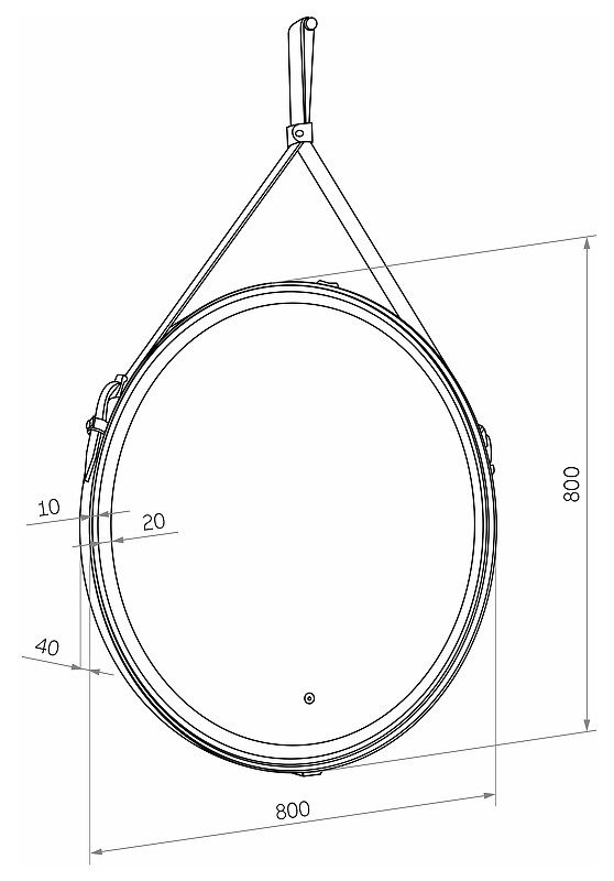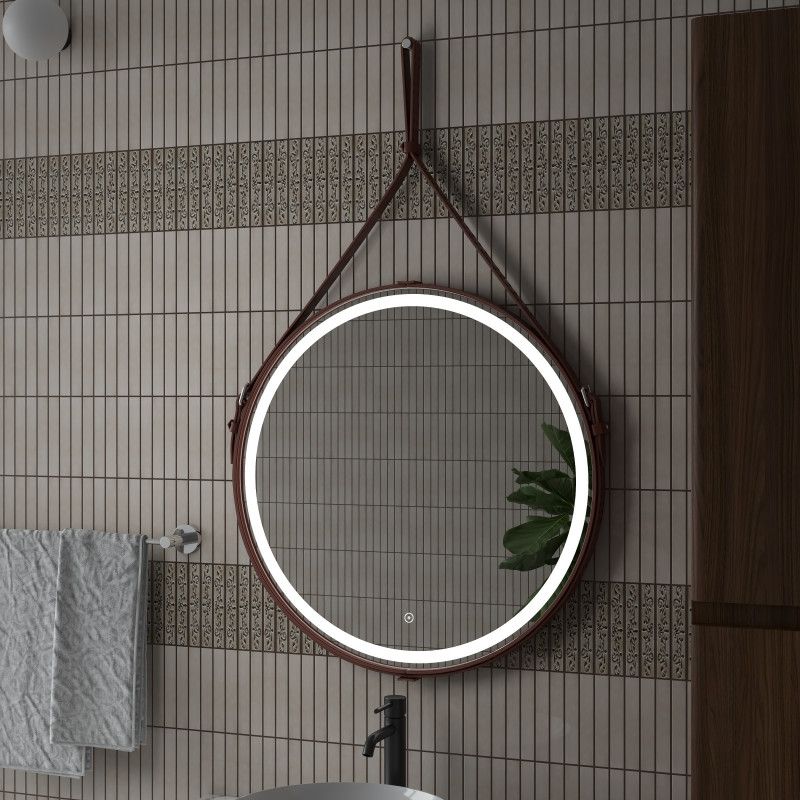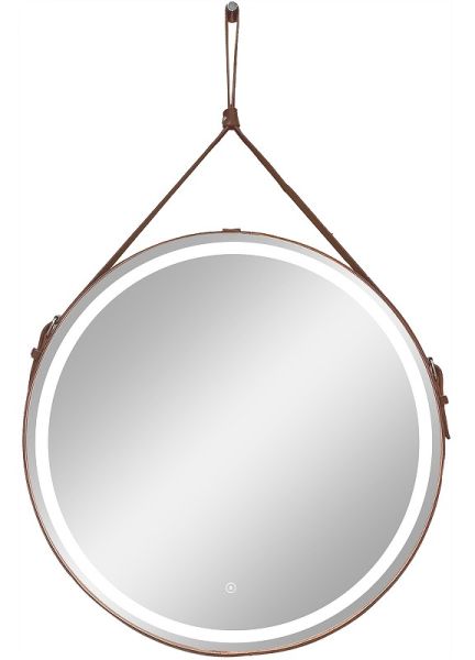 Зеркало "Millenium Brown Led" D 800 на ремне из натуральной кожи коричневого цветаLED подсветка 6000Ксенсорный выключатель с функцией димированияремень из натуркожи коричневого цвета