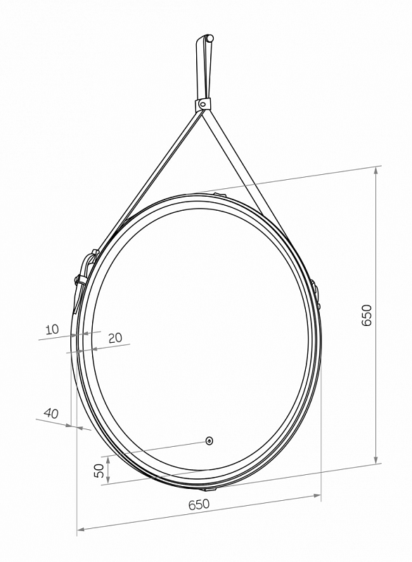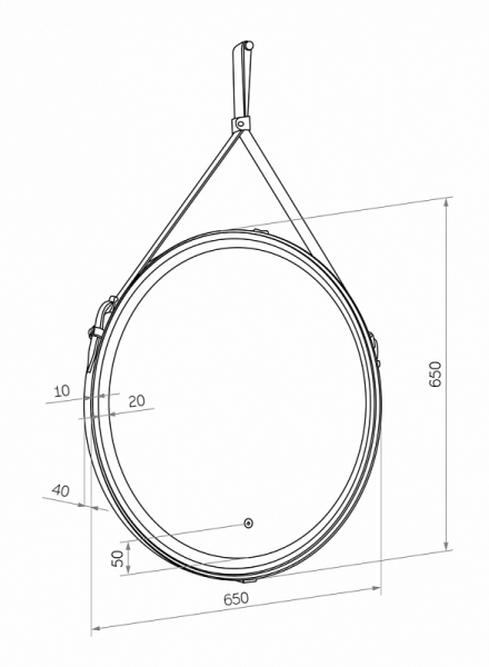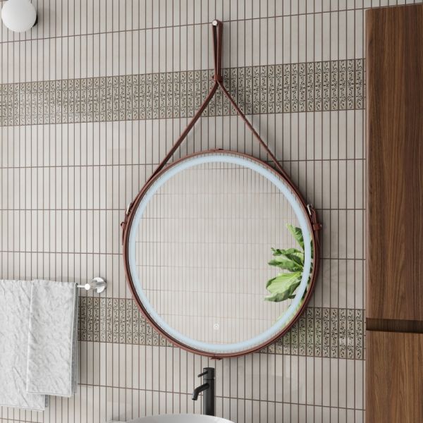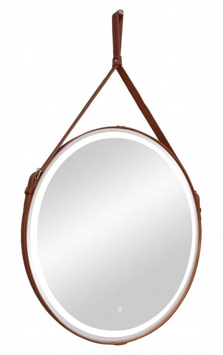 Зеркало "Millenium Brown Led" D 650 на ремне из натуральной кожи коричневого цветаLED подсветка 6000Ксенсорный выключатель с функцией димированияремень из натуркожи коричневого цвета