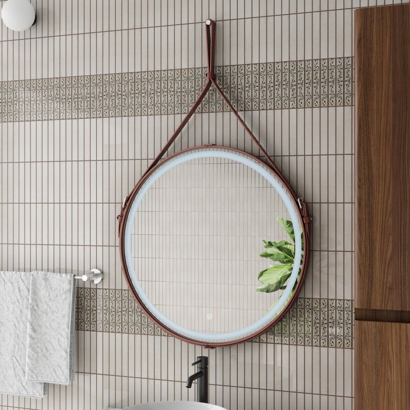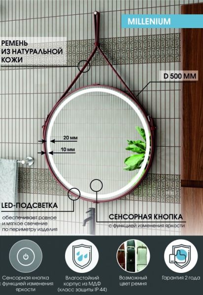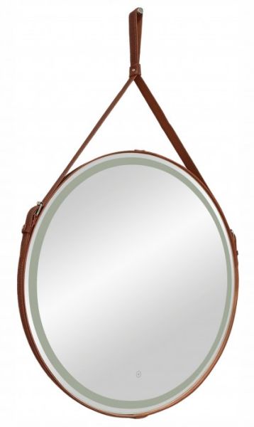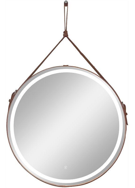 Зеркало "Millenium Brown Led" D 500 на ремне из натуральной кожи коричневого цветаLED подсветка 6000Ксенсорный выключатель с функцией димированияремень из натуркожи коричневого цвета