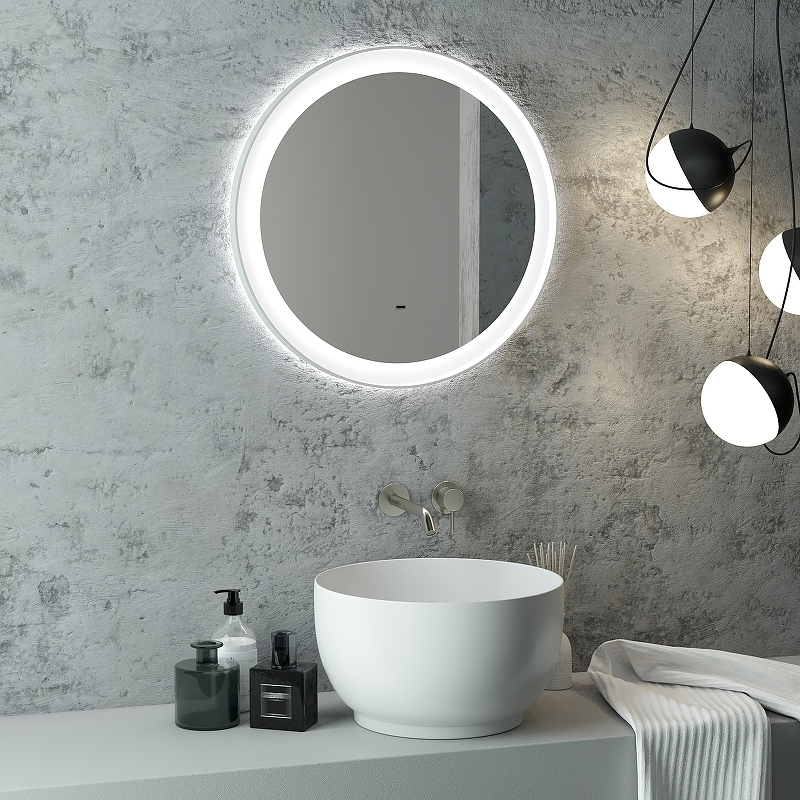 Зеркало "Planet white Led" D 800 с бесконтактным сенсоромLED подсветка 6000Кбесконтактный сенсор с функцией димированиярама - МДФкороб в белой пленке