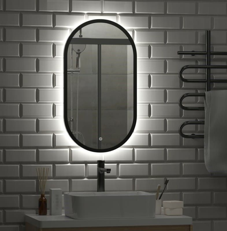 Зеркало "Prime Black Led" 450х800 в МДФ рамеLED подсветка 6000Ксенсорный выключатель с функцией димированияореольная подсветкарама черного цвета