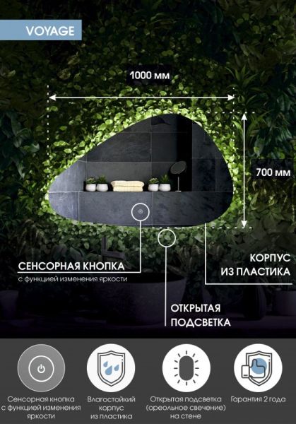 Зеркало "Voyage Led" 1000х700LED подсветка 6000Ксенсорный выключатель с функцией димированияореольная подсветка