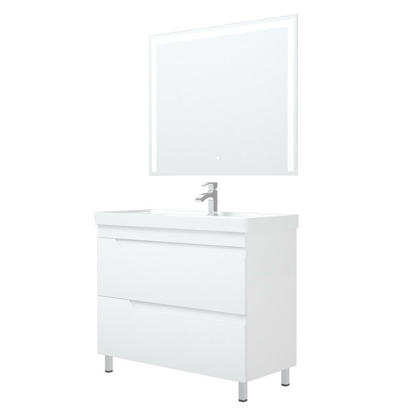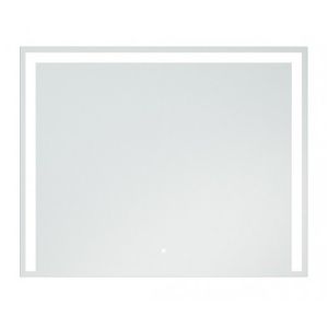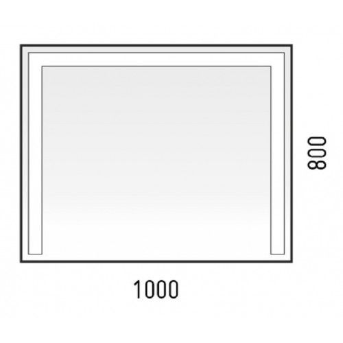 Зеркало с LED-подсветкой и сенсорным выключателем с регулировкой яркости. Квадратная кнопка. Ширина 1000, высота 800 мм. С отступом в 25 мм от края, по трем сторонам зеркала идёт полоса пескоструя шириной в 50 мм. Подсветка осуществляется при помощи нажатия кнопки. Существует возможность регулировки освещенности (делать подсветку ярче или темнее). Класс защиты: IP67. Класс энергетической эффективности: A++. Серебряное зеркало, стекло высшего качества M1. AC/DC трансформатор.