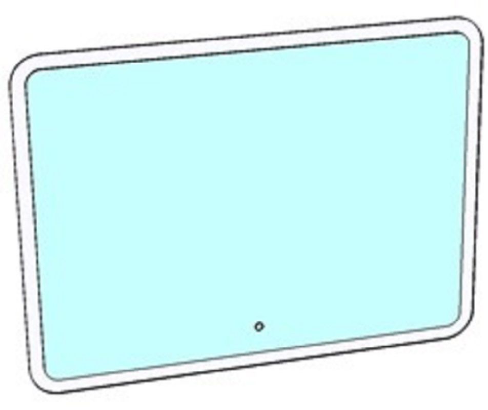 Зеркало оснащено LED-подсветкой и сенсорным выключателем с регулировкой яркости. Ширина 800, высота 600 мм. Углы скруглены. По всему периметру идёт область пескоструя шириной 25 мм. Подсветка этой области осуществляется при помощи нажатия кнопки. Существует возможность регулировки освещенности (делать подсветку ярче или темнее). Класс защиты: IP67. Класс энергетической эффективности: A++. Серебряное зеркало, стекло высшего качества M1. AC/DC трансформатор.