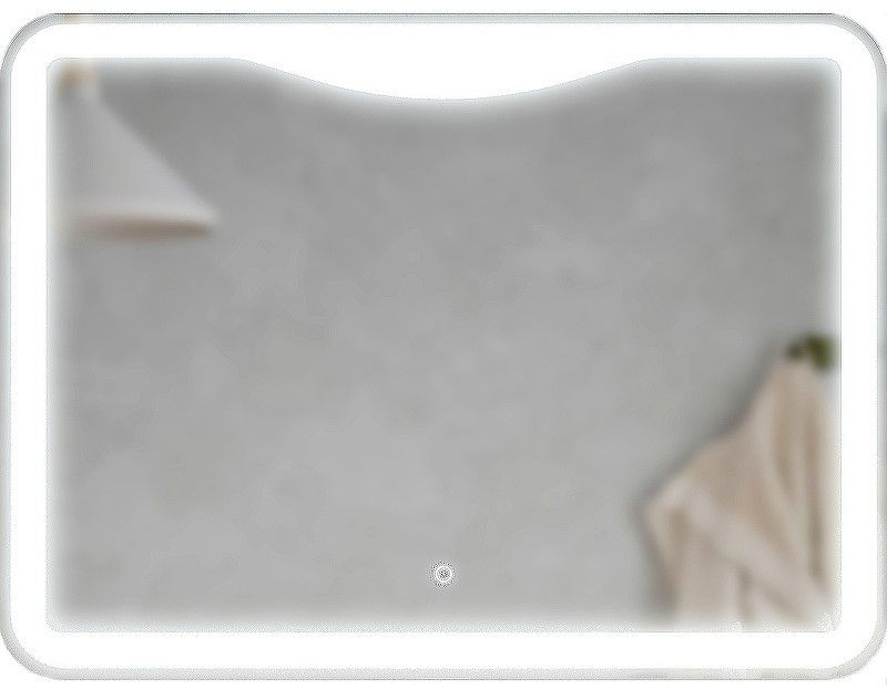 Зеркало "Орли" шириной 800 мм, высотой 600 мм. С отступом в 10 мм от края по всему периметру зеркала идёт область пескоструя шириной в 30 мм. Углы скруглены. Сверху зеркала - пескоструй в форме "чёлочки". Подсветка этой области осуществляется при помощи нажатия кнопки. Существует возможность регулировки освещенности (делать подсветку ярче или темнее). LED-подсветка, сенсорный выключатель с регулировкой яркости. Класс защиты: IP67. Класс энергетической эффективности: A++. Серебряное зеркало, стекло высшего качества M1. AC/DC трансформатор.
