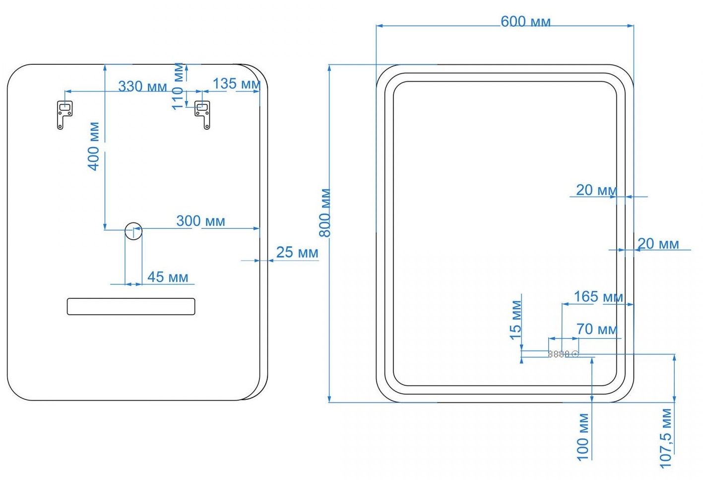 • Толщина светодиодной подсветки: 20 мм