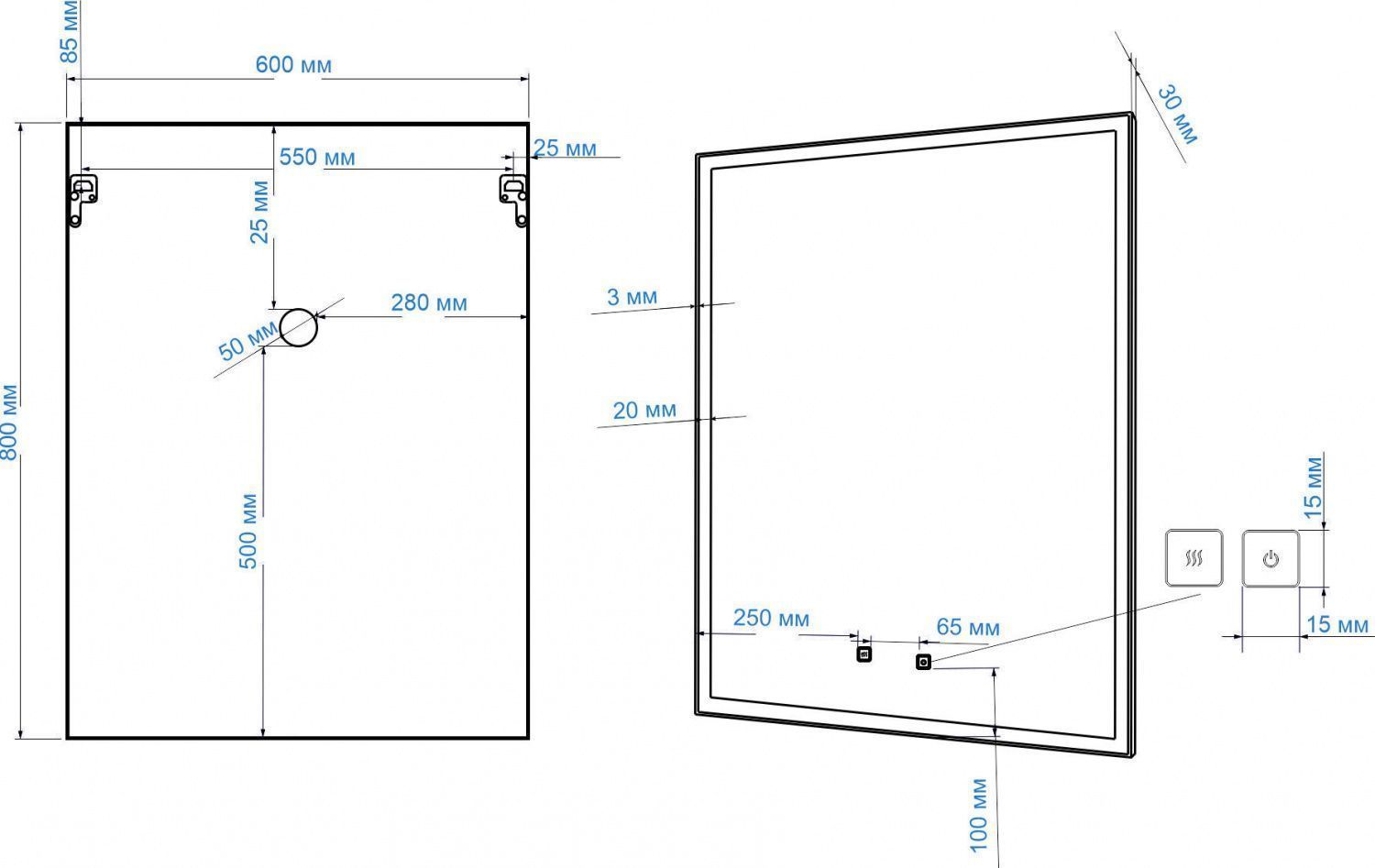 Тип:зеркало с подсветкой