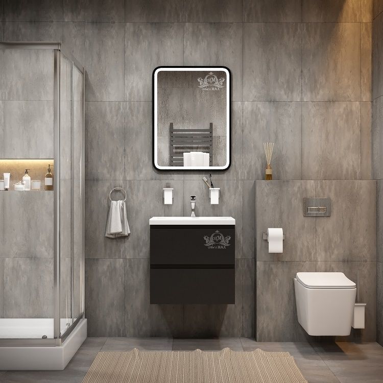 Зеркало с подсветкой и функцией антизапотевания Art&Max Genova 60x80см чёрный AM-Gen-600-800-DS-F-H