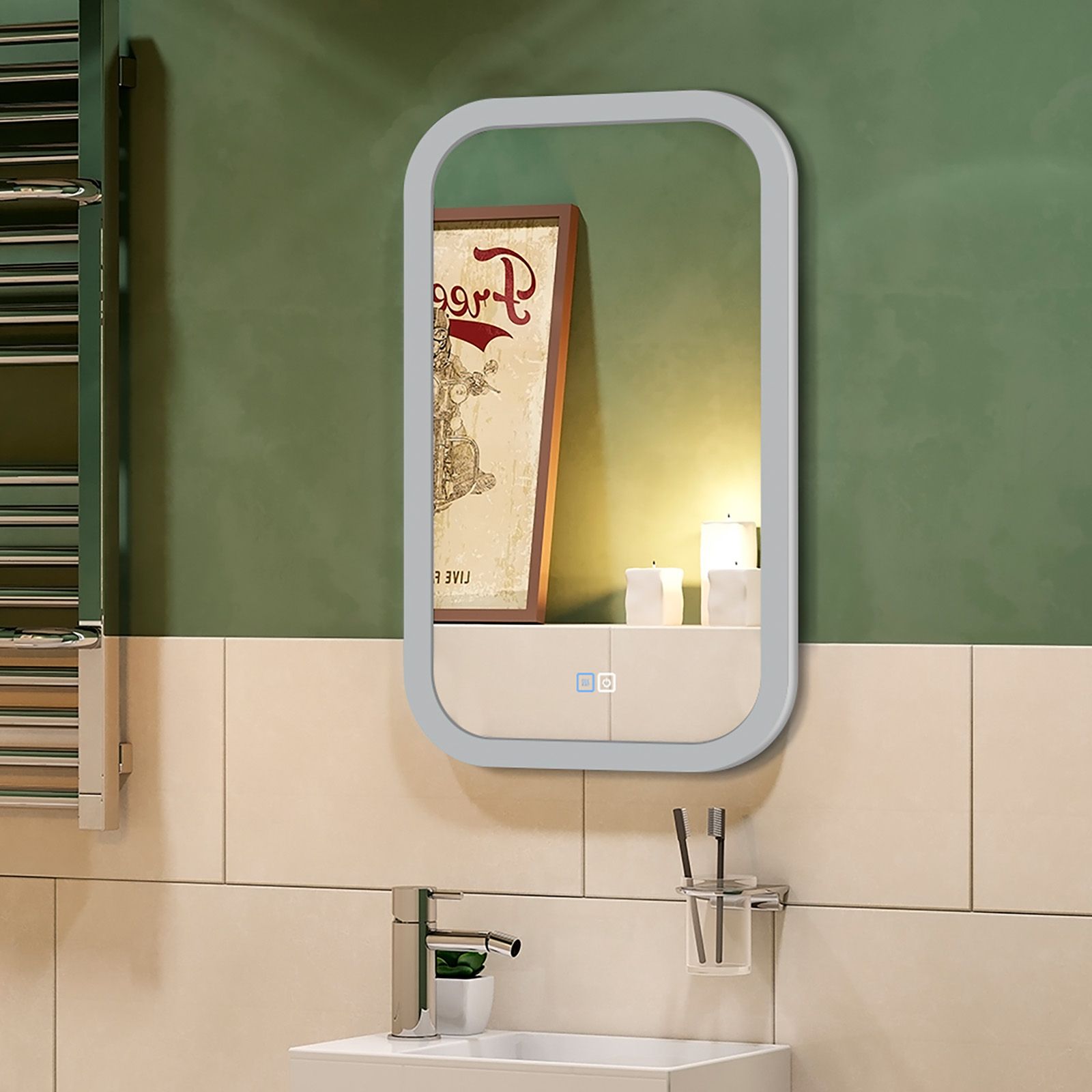 Зеркало с подсветкой для ванной комнаты — это элемент интерьера, который сочетает в себе функции, эстетику и современный дизайн. Его изящная форма и тонкие линии легко вливаются в любое пространство, создавая атмосферу утонченности и уюта.Интегрированная светодиодная подсветка обрамляет зеркало, даря мягкий, рассеянный свет, который не только позволяет удобно наносить макияж, но и наполняет ванную комнату теплом и позитивной энергией.Классический дизайн позволяет использовать его в различных стилях – от минимализма до современного эклектичного оформления. Оно прекрасно вписывается в любую цветовую гамму, будь то нейтральные тона или более яркие акценты.