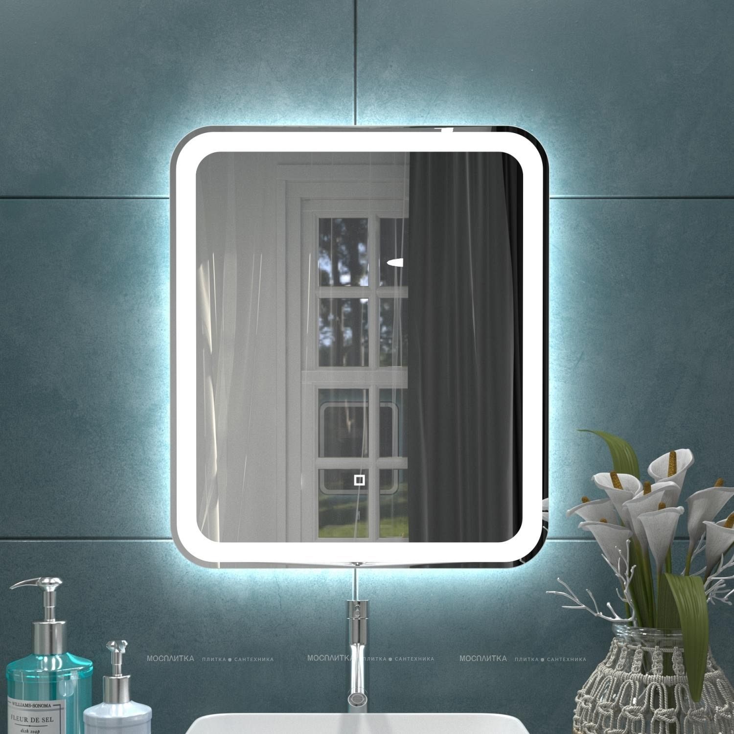 Яркость LED-подсветки регулируется при помощи встроенного диммера и сенсорной кнопки на поверхности зеркала.
