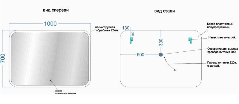 Зеркало с подсветкой Sancos Arcadia AR1000 100см с сенсорным выключателем